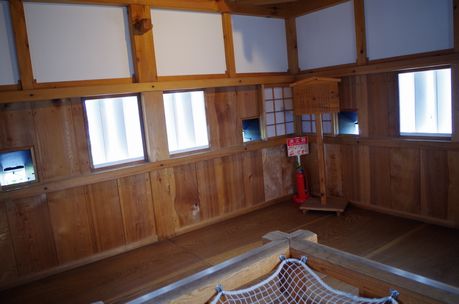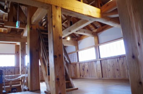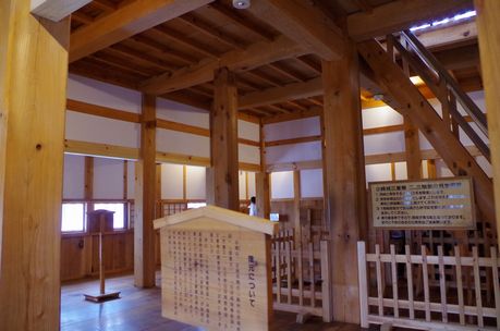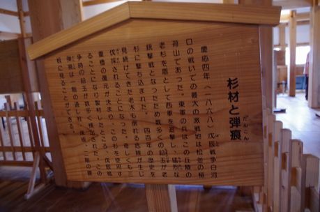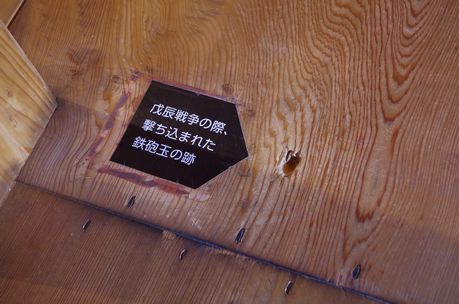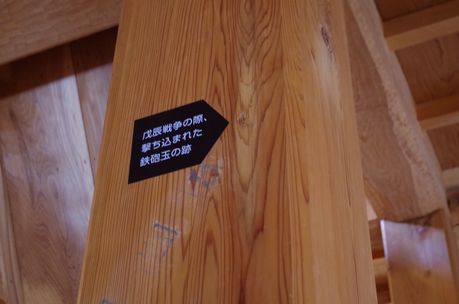 三重櫓は稲荷山の材木を使用して復元されたので、弾痕が残ってるんです!