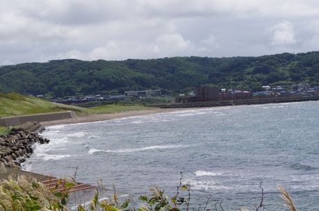官軍上陸の地碑近くの海