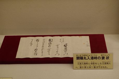開陽丸入港の時の褒状